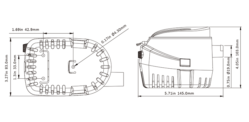 With a capacity of 2840 liters per hour (750 GPH), this unit quickly and efficiently pumps water out of the bilge. Thanks to its all-in-one design, no separate float switch is needed, simplifying installation and reducing the number of failure-prone components.