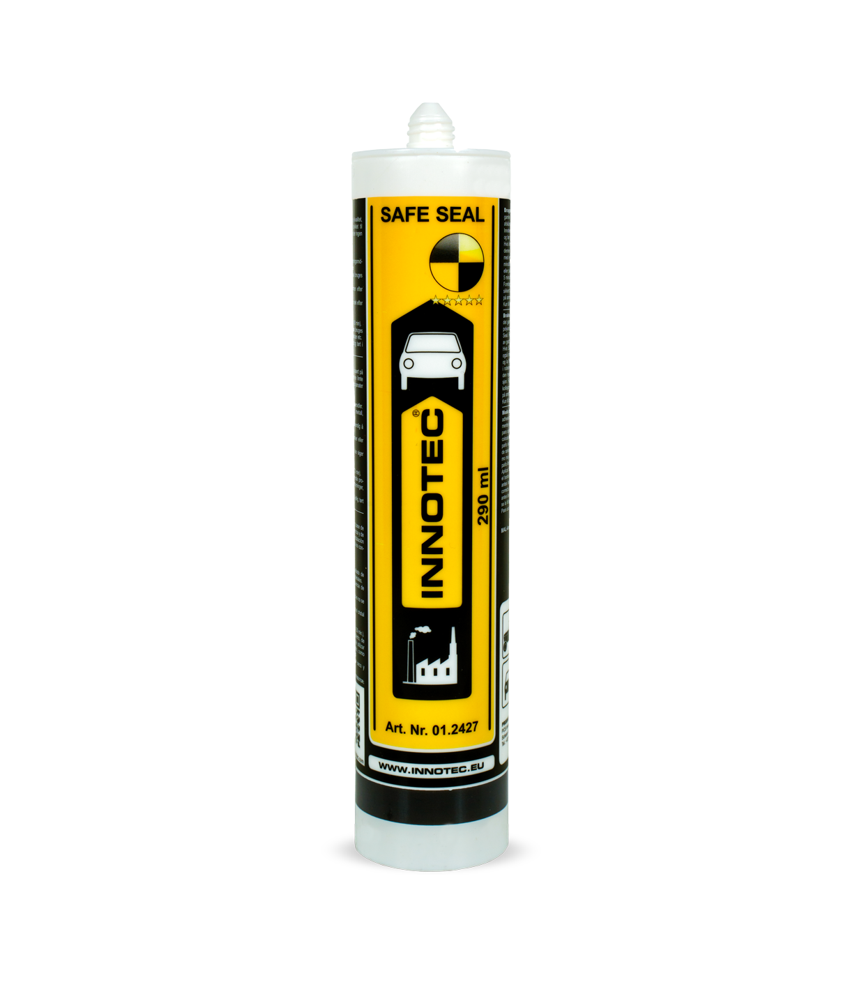 Daarnaast is Safe Seal door TÜV Rheinland gecertificeerd door middel van een FMVSS 212 crashtest: 30 minuten na het verlijmen van de voorruit crashte de testauto met een snelheid van ruim 48 km/h frontaal tegen een blok beton. Daarbij bleef de ruitverlijming 100% intact, waardoor alle veiligheidssystemen zoals airbags en gordelspanners optimaal werkten. Dit bewijst dat Safe Seal bijdraagt aan de meest optimale voertuigveiligheid, zoals die bij de ontwikkeling door de constructeur werd beoogd. Safe Seal is door zijn MS-polymeerbasis lang houdbaar na opening, hierdoor hoeven geopende kokers niet meer weggegooid te worden. Het product is na montage ook zeer eenvoudig van de handen te verwijderen. Door de handige verpakking in kokers van 290 ml is Safe Seal zeer gemakkelijk en economisch in het gebruik.
